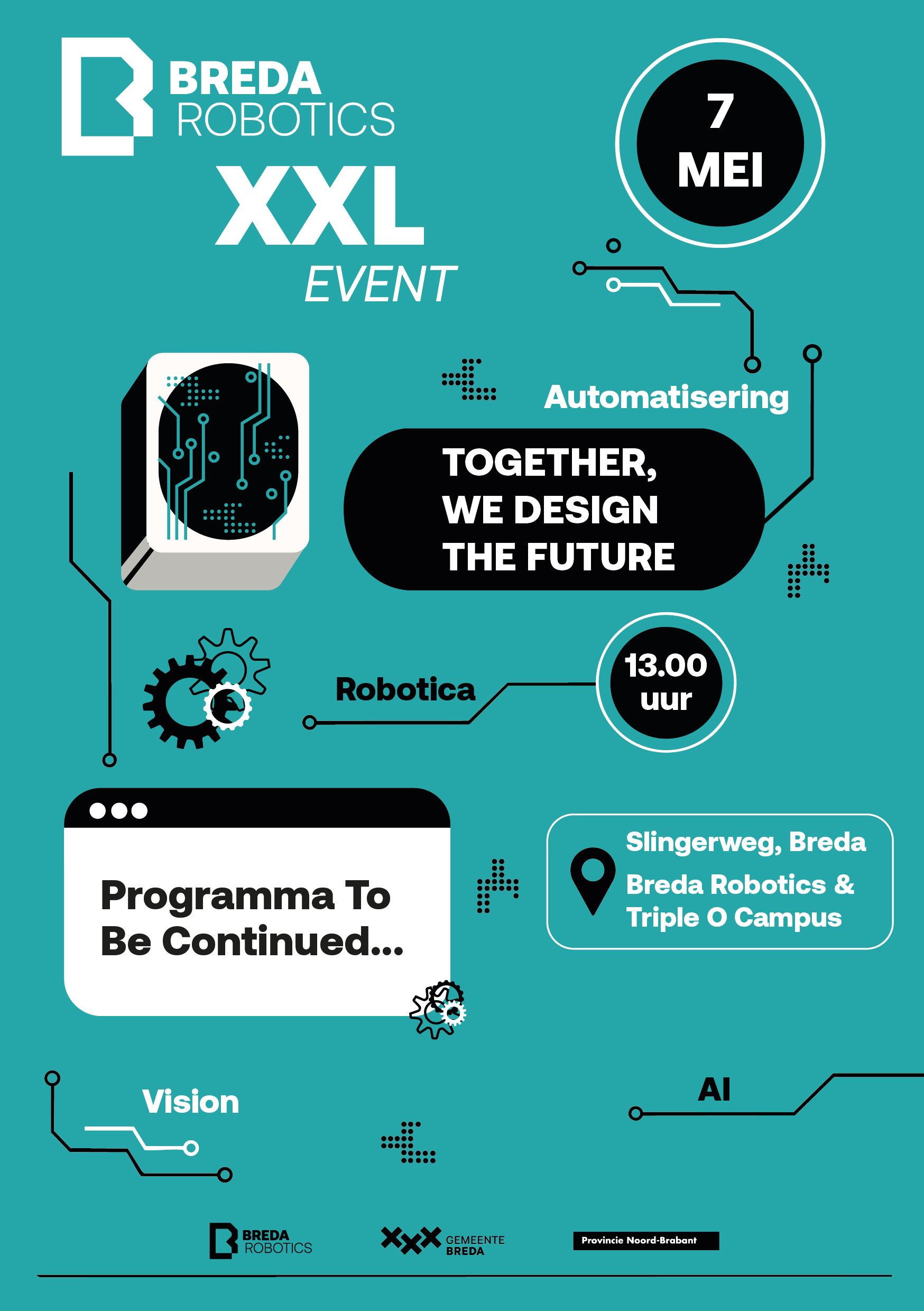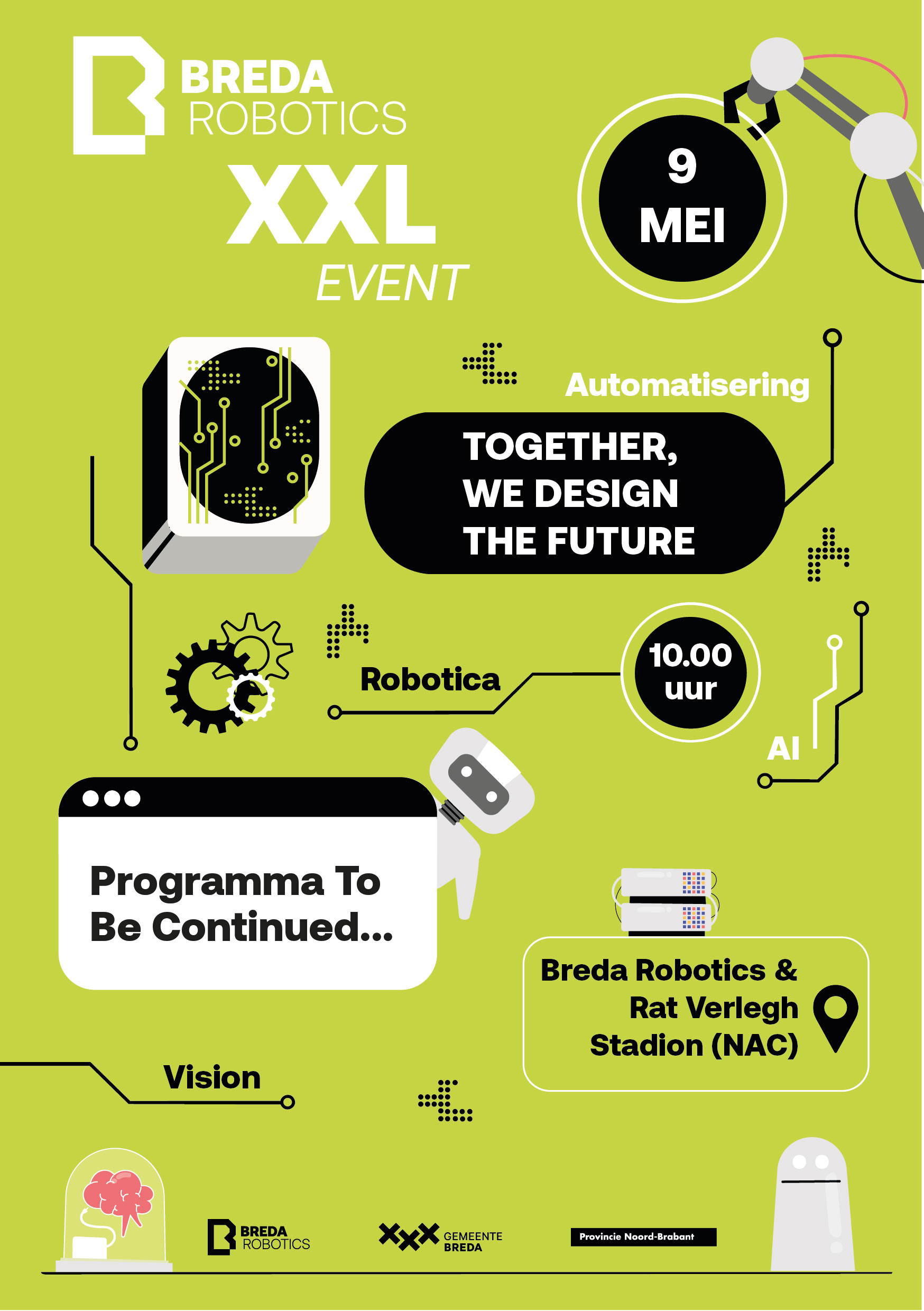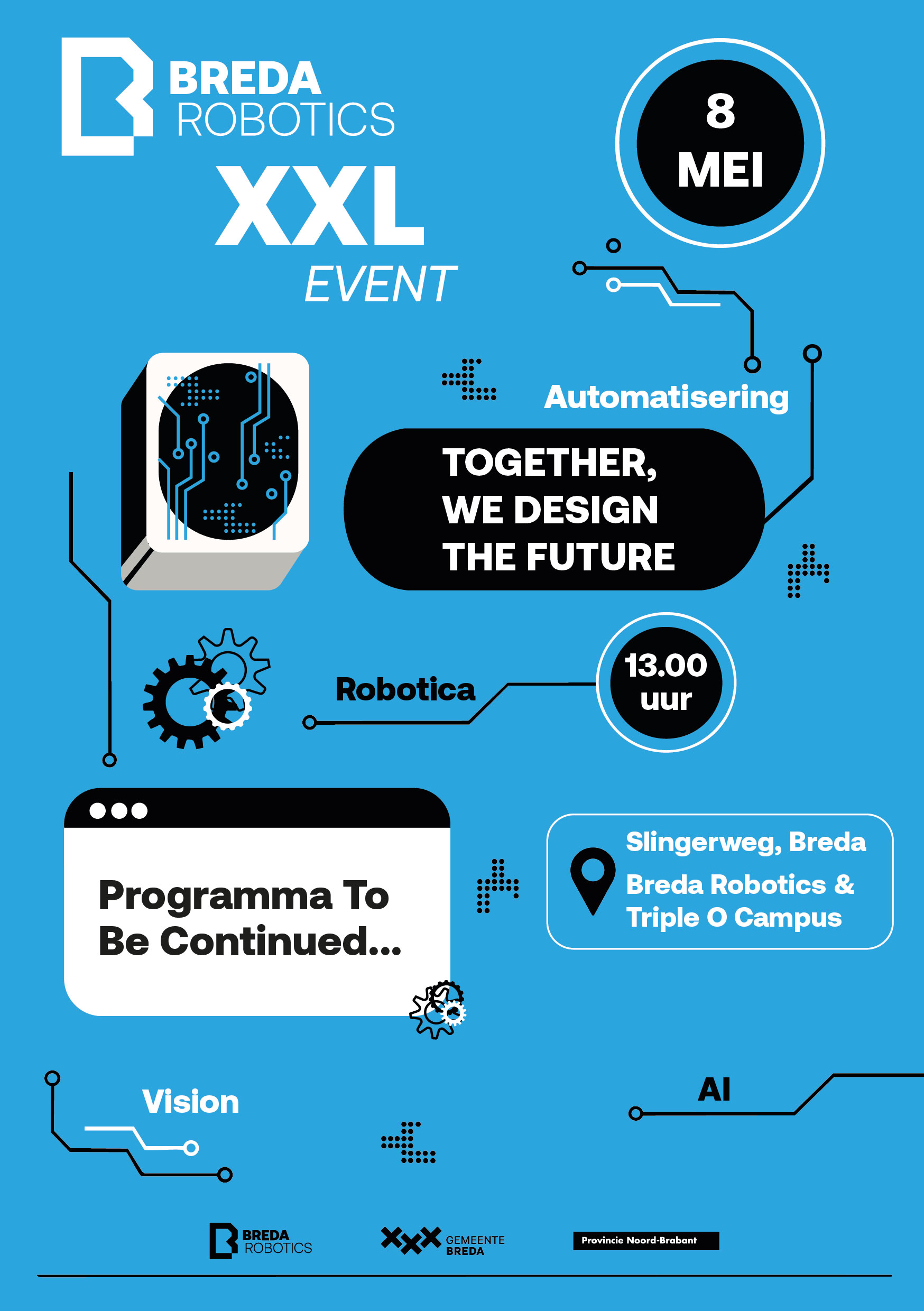 Ons jaarlijkse event, Breda Robotics XXL, komt er weer aan! Na drie succesvolle edities in samenwerking met Gemeente Breda breiden we in 2026 uit naar een driedaags event op 7, 8 en 9 mei, elk met een eigen programma. Hiermee willen we een nog breder publiek kennis laten maken met Robotica en AI, én bieden we extra ruimte voor inspiratie, innovatie en interactie.