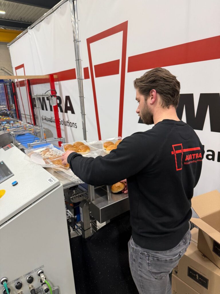 Samen met AMTRA Engineering, Fontys en Flanders Make is een robotopstelling ontwikkeld die broodjes automatisch oppakt, controleert en in MAP-verpakking plaatst. Na testen met verschillende grijperconcepten is gekozen voor een plaat- en vingergebaseerde oplossing die het product veilig en nauwkeurig kan hanteren.