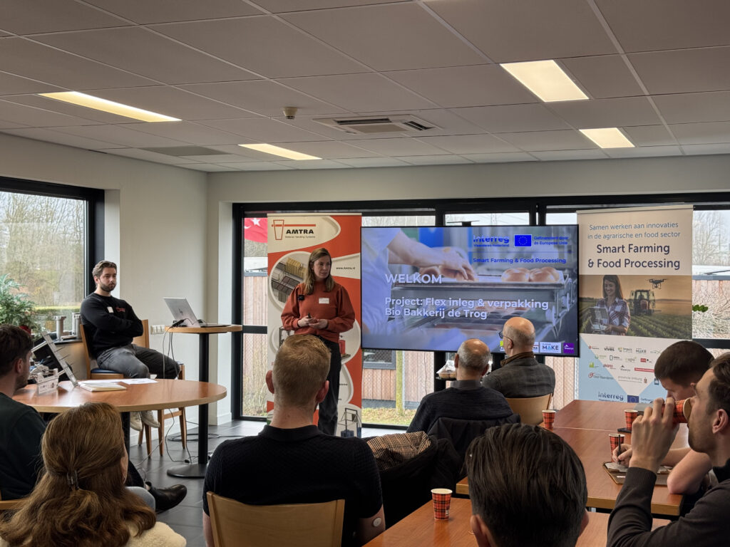 Binnen het Interreg Smart Farming & Food Processing (SFFP)-project werken Nederlandse en Vlaamse partners samen aan innovatieve automatiseringsoplossingen voor de agro- en foodsector. Projectleider Breda Robotics presenteerde bij AMTRA een praktijkcase rond het automatisch verpakken van broodjes. De succesvolle demosessie vond plaats op dinsdag 27 januari en werd bijgewoond door ongeveer 25 deelnemers uit bedrijfsleven, kennisinstellingen en netwerk
